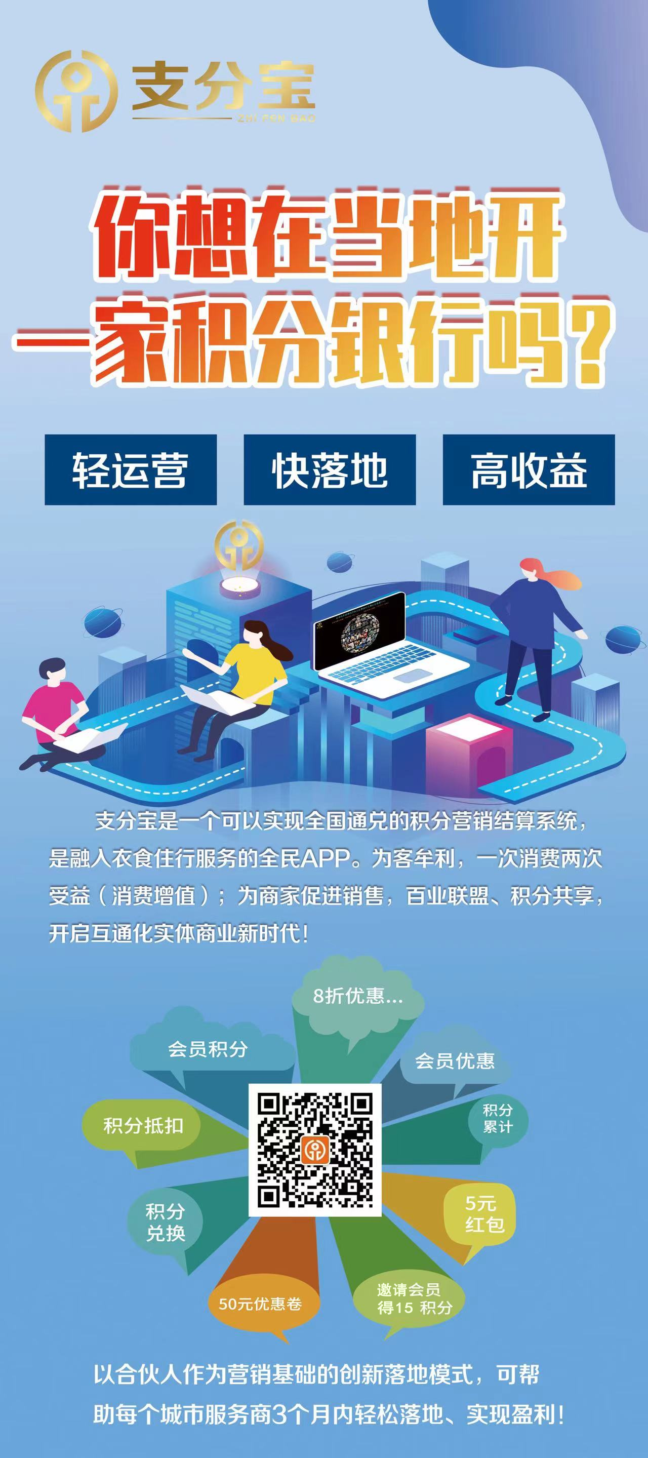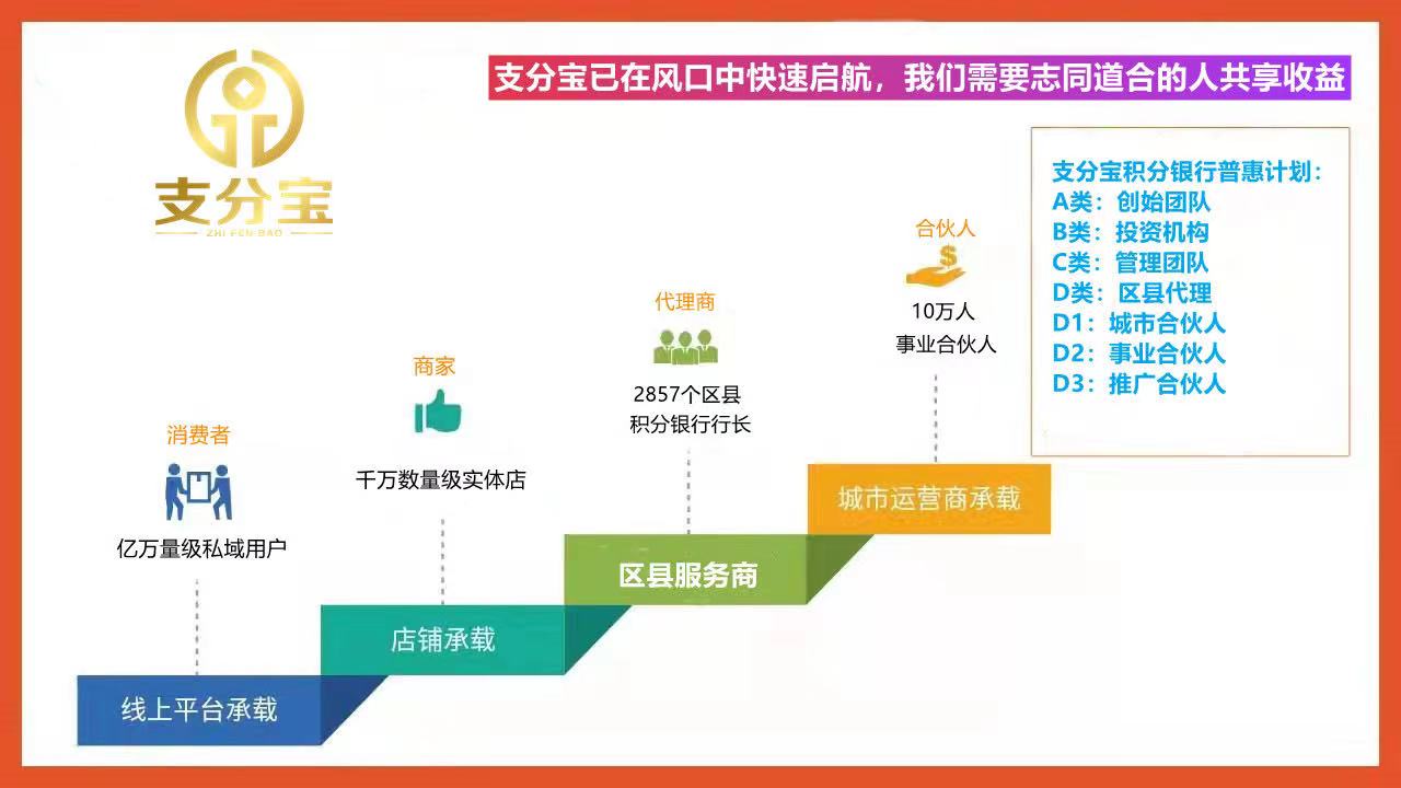 支分宝是一个可以实现全国通兑的积分营 销结算系统,是融入衣食住行服务的全民 APP。支分宝商城,主要服务实体商家,帮 助商家对消费顾客给与积分回馈,消费者 可使用积分兑换商家服务的APP